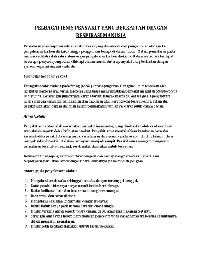 Pelbagai Jenis Penyakit Yang Berkaitan Dengan Respirasi Manusia Pdf